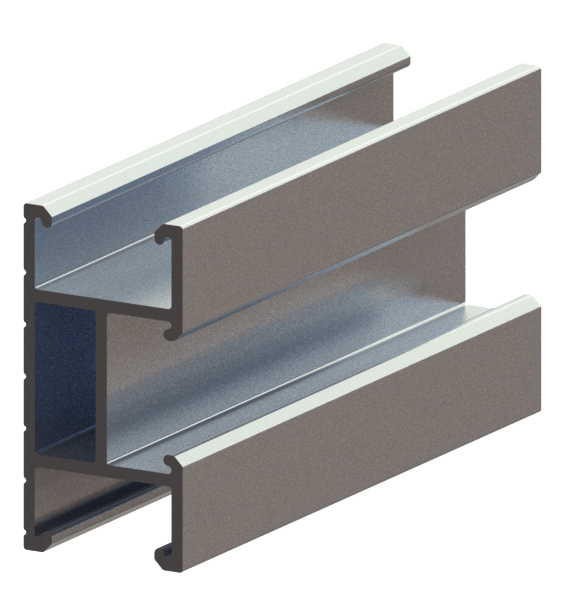 Perfil de alta resistencia especialmente diseñado para servir como base en la instalación de módulos fotovoltaicos que optimiza al máximo el material empleado en su fabricación